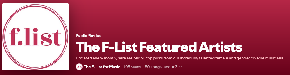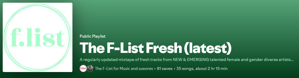 Welcome to The F-List Music Streaming Playlists - all tracks have a female musician featured in The F-List
